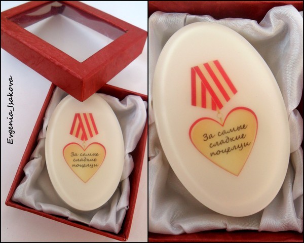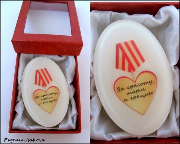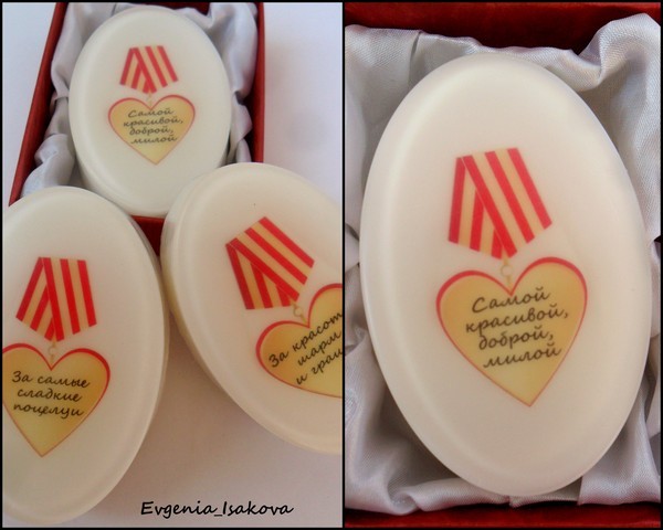 Мыло с медальками классное! Давно любуюсь =) И коробочки супер!=) У меня с коробочками пока проблема, просто не хватает на них времени.. =( Ты сама делала или покупные?..