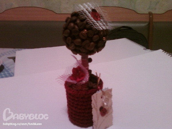 Декор, витражи.Сделались кофейные деревца в подарок для учителей деткам в школу, делала маленькие, так быстрее и интереснее.