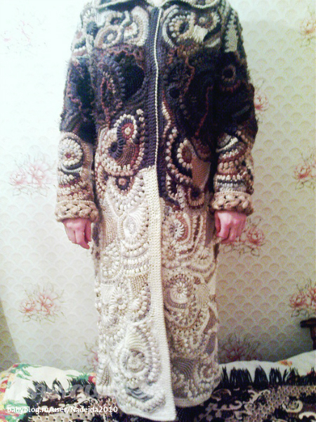 Весит оно в пределах 1.5 кг. Носится как обычное пальто, посажено на подклад, чтобы сильно не вытягиволсь. А вообще вес зависит от размера, это примерно 52-54 размер.