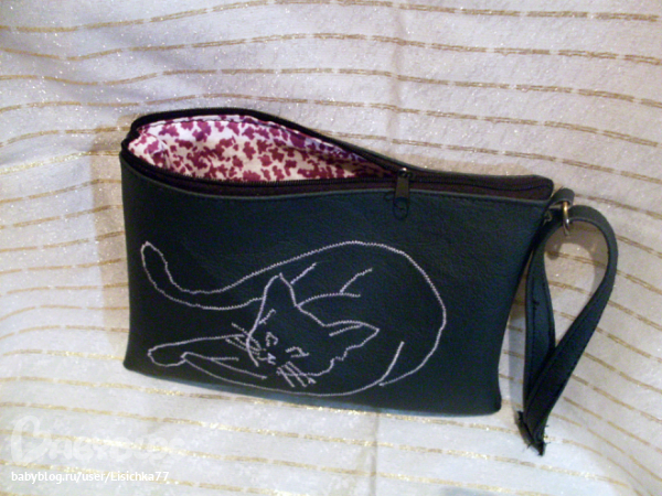 вышивала обычной швейной машинкой , нарисовала контур на кож. зае и поехала, а самого кота я в нете искала написала силует кошки и можно написать контур кошки, вот))) надеюсь понятно обьяснила