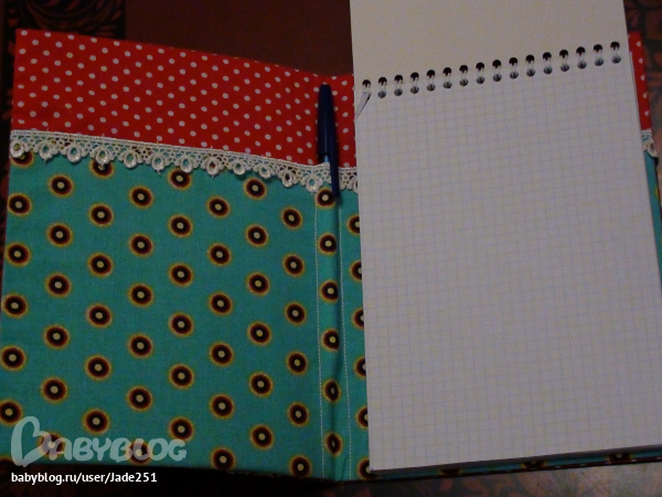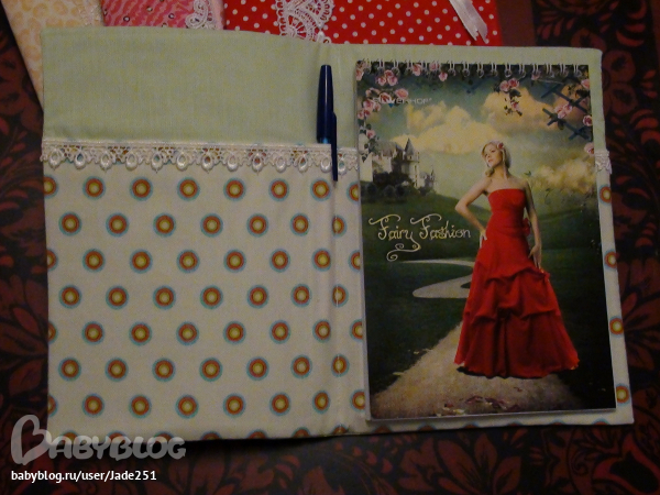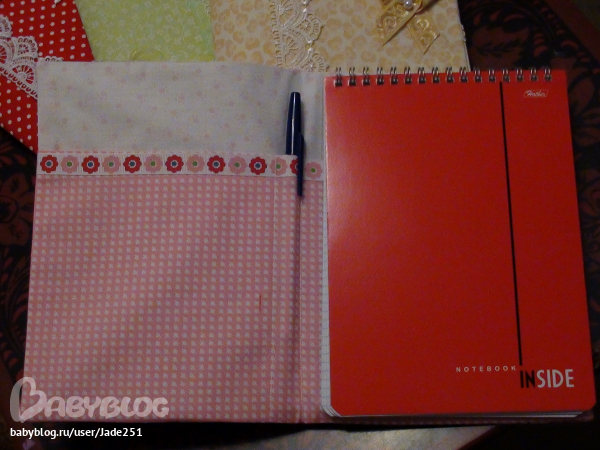 Мне нравится идея, сама сейчас что-то подобное делаю, но вот сделать кармашек для ручки не догадалась. Оформление красивое и аккуратное
