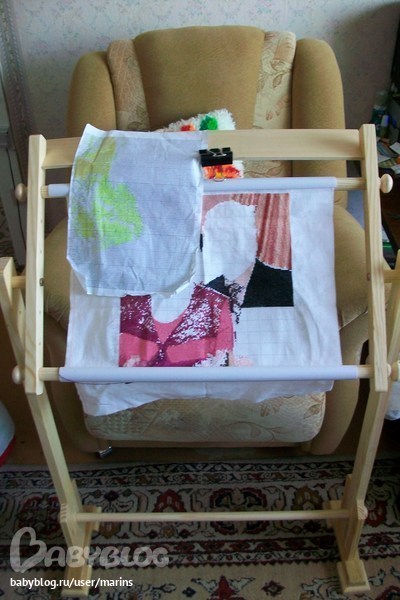 нижняя и 2 круглые палки, на которых крепится канва они разные по размерам по ширине и в высоту меняется станок. на маленьком станке 1 пластикова клипса помещается, а на большом-2