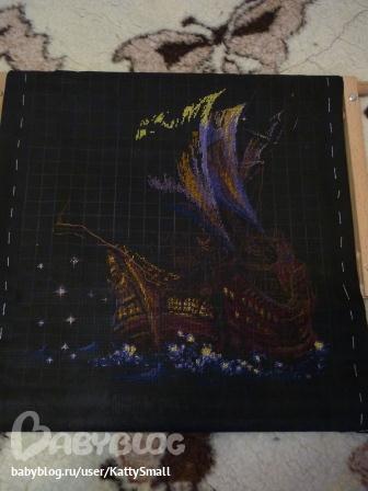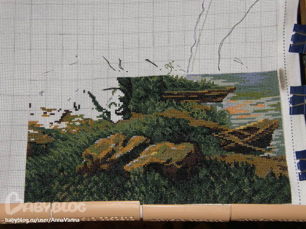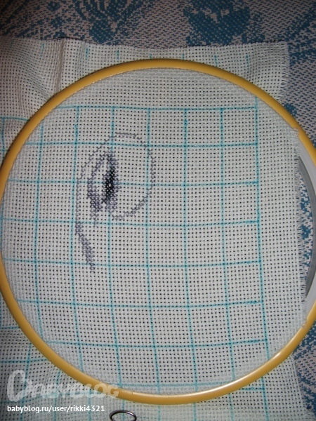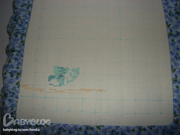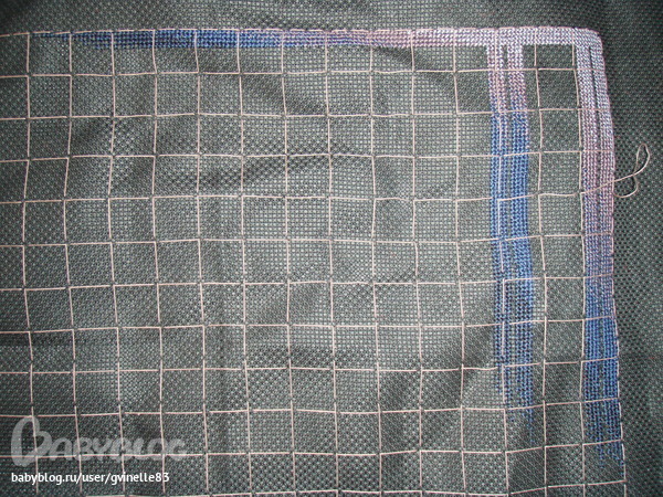 Здесь я успела только разметить канву и обметать её края (вручную)