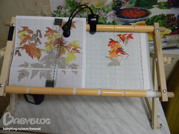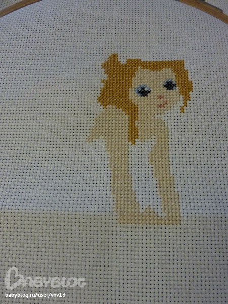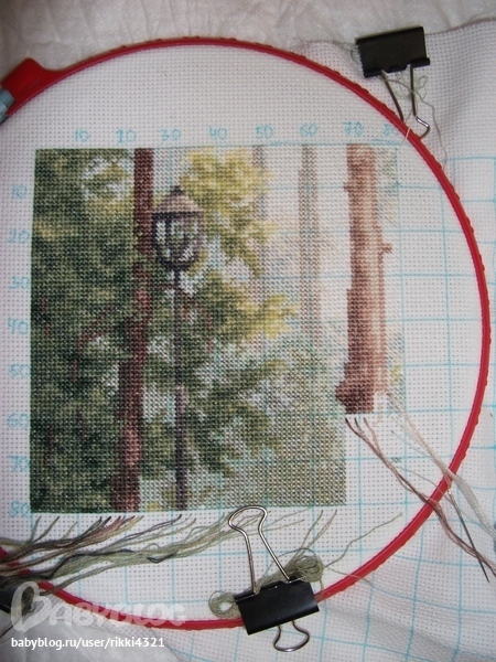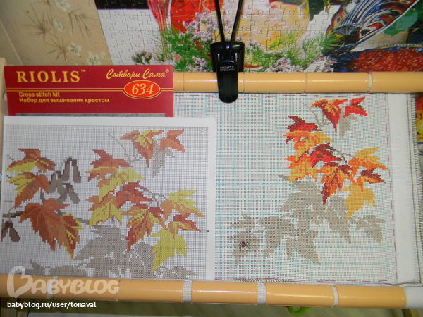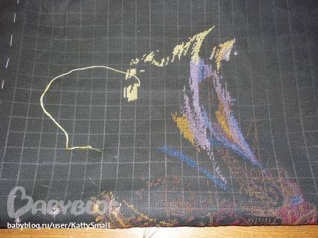 представляешь?! Я - нет. Это ж полный рабочий день. Так ладно, работы. Вынужденно. А это ж хобби. Насиловать так себя нельзя. Да еще и со зрением у нее было не очень. Мне кажется, что она вышивала по 3 месяца. Короче, не суть важно. Главное, что у нее уже их точно 5 (а может и все), а у меня еще только кусочек одного. АААА. Хочу быстро с ним, а знаю, что дальше тяжелее. Еще это лето на носу. Не даст целый день дома с дочками просидеть. Нужно будет гулять...