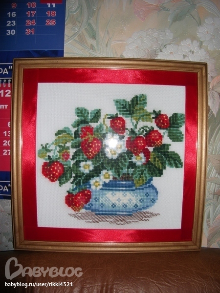 P.S. Оформила свою клубнику и подарила на юбилей. Вышивала в конце января.
