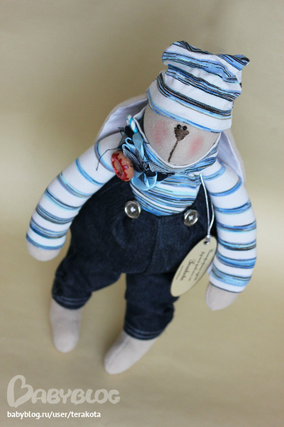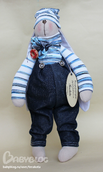 Этот зайчик мне очень понравился, чем-то на Севочку моего похож, если их можно сравнивать конечно))) Он уже продался? Я бы его купила...и даже без лямок)))
