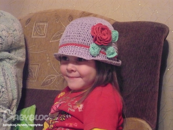 спасибо!Для полей провязываем 2 ряда СБН. Во втором ряду делаем прибавки в каждый 5-й столбик. В следующем ряду в каждую вершинку столбика предыдущего ряда провязываем поочередно 1 рельефный столбик и 1 СН. Т.о. крючком №2,1 провязываем три ряда полей. Потом меняем крючок на №2,5 и провязываем еще 2 ряда. На фото видно, что поля становятся перпендикулярно к самой шапочке с первого ряда их провязывания. Последний ряд провязываем рачьим шагом крючком № 2,1. на Осинке есть МК
