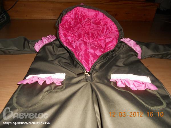 тоже дошиваю своему комбез, медленно дело идет, Андрюня никак не дает рукодельничать(( 2 дня кроила, потом затишье, сегодня всю верхушку сделала махом, пока спал.. теперь молния и подклад - когда сделаю - не знаю.... я темно-оливковый цвет выбрала. еще, блин, с капюшоном намудрила-решила уменьшить - только-только, надо побольше, так что и капюшон перешивать(