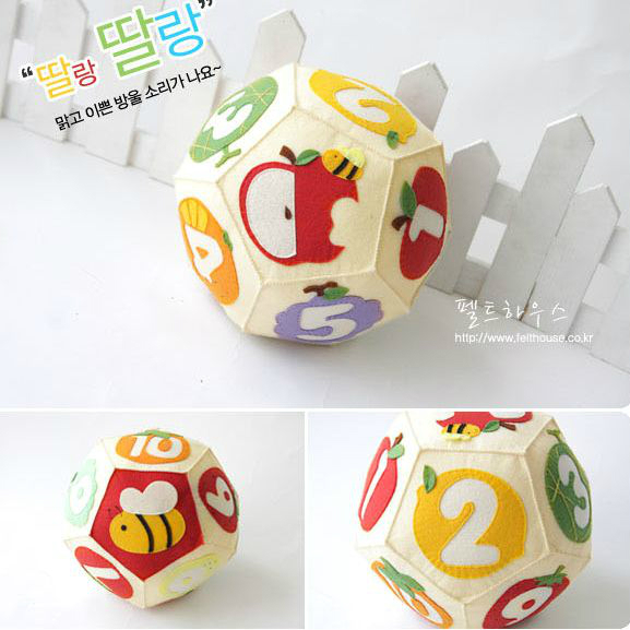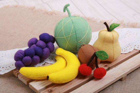 мячик и цифры сделаны из жесткого фетра, а вот фрукты лучше, на мой взгляд ,выглядят и тактильно приятнее будут из мягкого фетра смотрите, вот пример