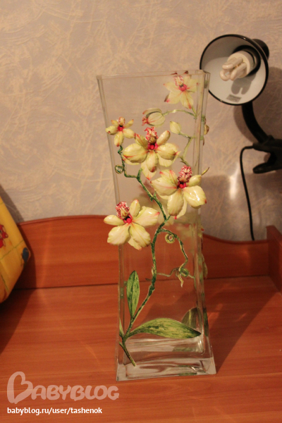 не знаю, на стекле вазы рисунок и выруклое твердое, может и ткань, не знаю. воду налить можно, но она тяжелая шо ппц, это мой кум вазу, видать выбирал, у него гигантомания :))) он мне в этом году на др (27 лет) припер цветочков...роз... 63 штуки, в ведре стояли а теперь вот вазочку под свои букетики :)))