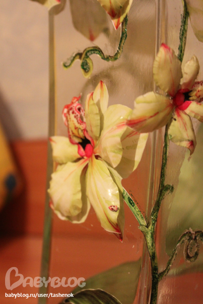 Если стеклообразное то видимо это все-таки акрил (у меня сестра бокалы акрилом украшает), просто по фото мне показалось, что это ткань под клеем- не знаю как техника такая называется но супер однозначно!