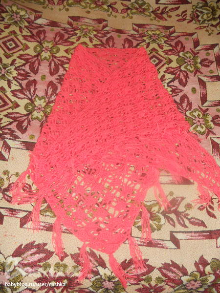 Вот первый блинточнее ШАЛЬ. Так мне захотелось связать себе шаль. Да к тому же ажурную и яркую. А спицами ажурно-приажурно не очень получается, поэтому возникло желание научиться вязать крючком.... И вуаля
