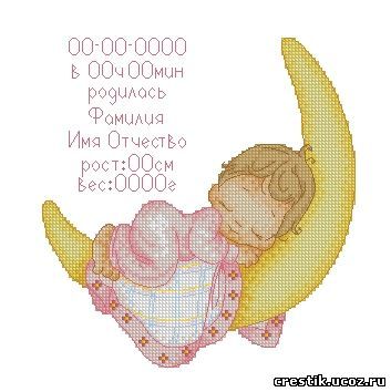 http://crestik.ucoz.ru/load/detskie_metriki/53 вот тут есть и для мальчка и для девочки на луне, посмотрите))) а может что нить другое заинтересует.