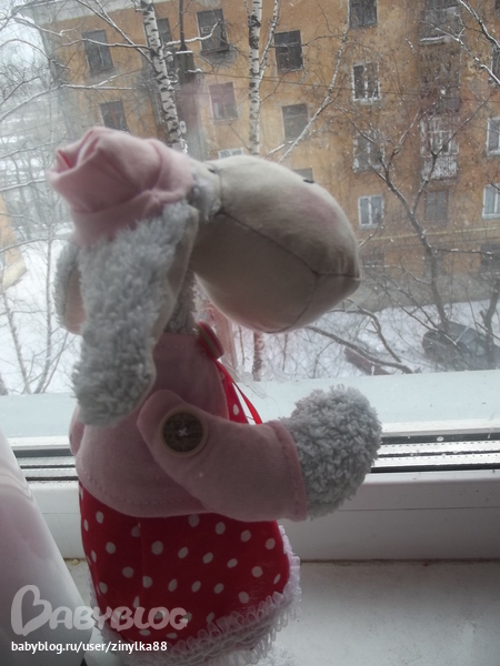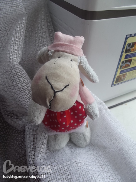 Это первая овечка, мы её с дочками назвали Марго) далась она нам не легко, т.к. махровая ткань жестковата оказалась для мелких деталей, но она нам очень нравится