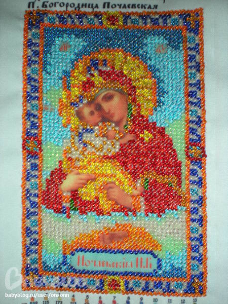 Здравствуйте Наташа. Вот сижу и смотрю на вашу работу. Безусловно ваш труд вызывает уважение. Но вот то ли производитель неудачно сделал схему, то ли бисер неудачно подобран.Я так подозреваю что это была отдельно канва с нанесенным рисунком и отдельно бисер. Пишу не для того что бы вас обидеть. Я уже их столько навышивала ( штук 50) . очень рябит, сложно выделить некоторые элементы (например на нимбе не понятно то ли корона то ли еще что то) Вообщем не очень удачная работа. Я конечно вас сейчас обидела. Но так хочется что бы если мастер взялся за работу то она приносила радость, а не замешательства. тысячу раз простите