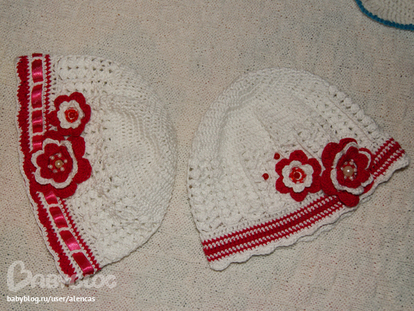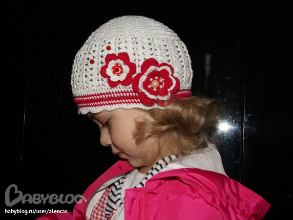 Две очень похожие шапочки - для дочки и ее маленькой подружки. Примеряет дочка. Фото под катом.