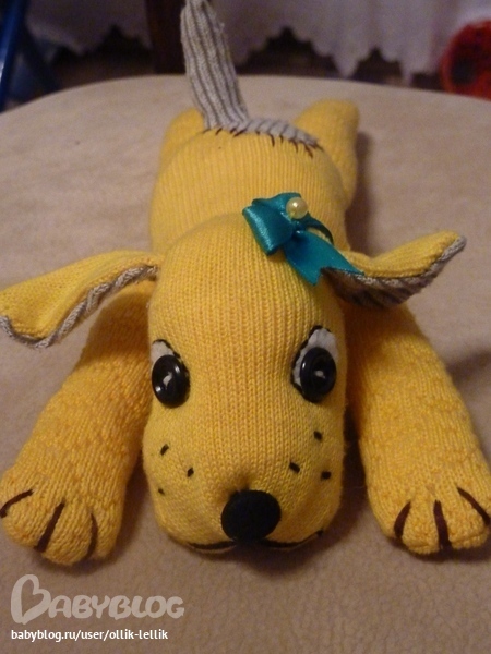 Ой, ой, ой, какая клаааасная собачка!!! уууух, как мне понравилась, желтенькая такая, яркая, и мордочка добрая! спасибо за инструкцию по шитью этой собачки, сейчас подробненько изучу)))) пошла носки искать))))))