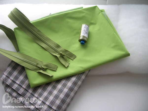 Из изменений - сделала молнии сверху, от липучек, заявленных в модели, отказалась. Основные детали простегала. Капюшон сделала с застежкой. Пока кнопки не поставила на внутреннюю защиту и капюшон, до ателье некогда доехать.