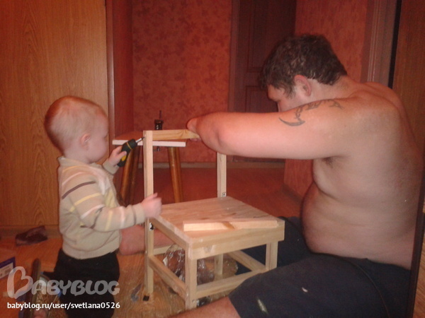 Работа с деревомРешил наш папа сделать сыну стул, проснуулось у нег в дохновение!!!