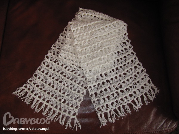 Cпасибо, напрактикуемся с тобой и начнём шедевры вязать )))))) на двойке просто дырочки поменьше получаются , зато быстрее на тройке свяжешь. С шерстью пока не связывалась, но у меня свекровушка ручки потирала при виде этих шарфиков со словами, вот бы мне связать что нить из альпака. Нда, я подумала, а шерсть эта не дешевая. Ну ладно, буду пока тренироваться на более дешёвых ниточках, а к 60-ти летию её свяжу чё нить )))