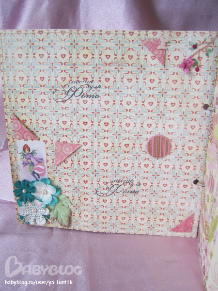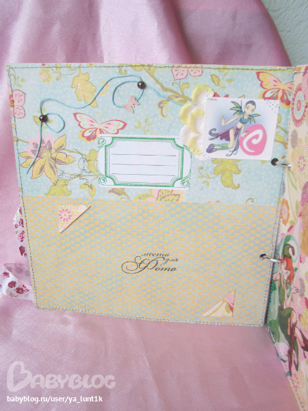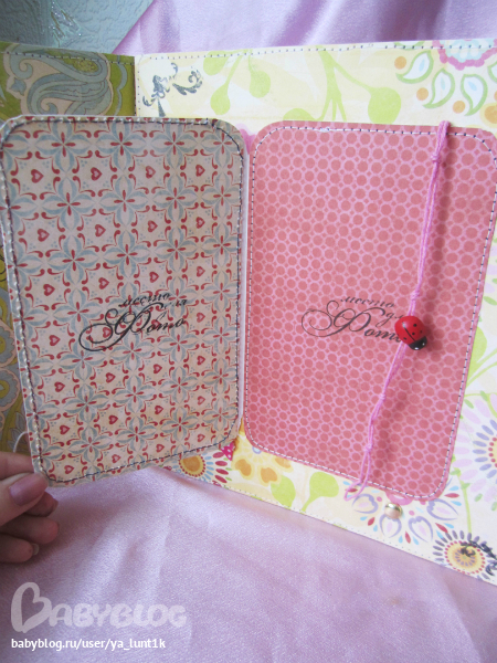 У левой странички есть кармашек.Можно всякие записочки\пожелания прятать=)