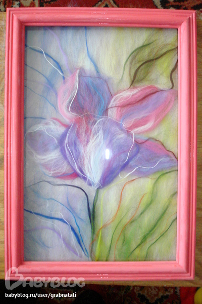 Натали в Рукоделие 14 лет Шерстянная акварель. Готовлюсь к выставке. В день по картине. Сегодня получился просто сказочный цветочек. Это фото без стекла и рамки Фото картины под стеклом и с рамочкой. Отсвечивает фотовспышка. Посмотрите еще 20 записей на эту тему Отменить Ответить Наташа здОрово) 22.03.2012 Ответить Мария 22.03.2012 Ответить Королёк Очень нежно!!!! 20.03.2012 Ответить ~ Лентяйка ~ красивооо !)) 20.03.2012 Ответить Ольга ШЕДЕВРЫ!!! ОЧЕНЬ КРАСИВО!!! 20.03.2012 Ответить Из какого материала удлинить капор на коляске? Пузатенькая:))) Чаты Беременных Выберите чат: Январята-2026 Февралята-2026 Мартята-2026 Апрелята-2026 Майчата-2026 Июнята-2026 Июлята-2026 Августята-2026