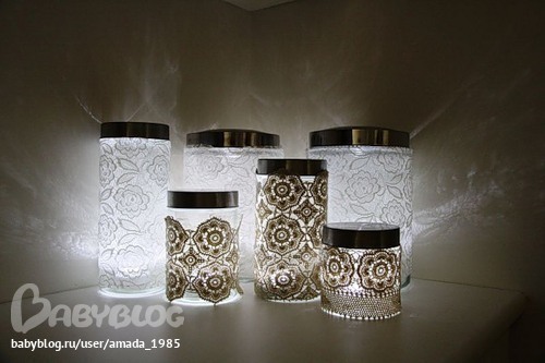 Такими изящными кружевными светильниками можно украсить вечеринку в саду или торжественное застолье. А если вы боитесь спать в темноте, то можете сделать себе такой ночник.