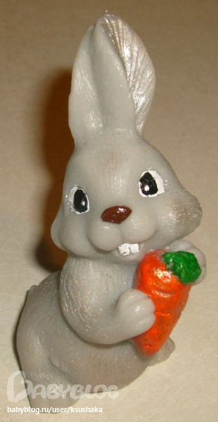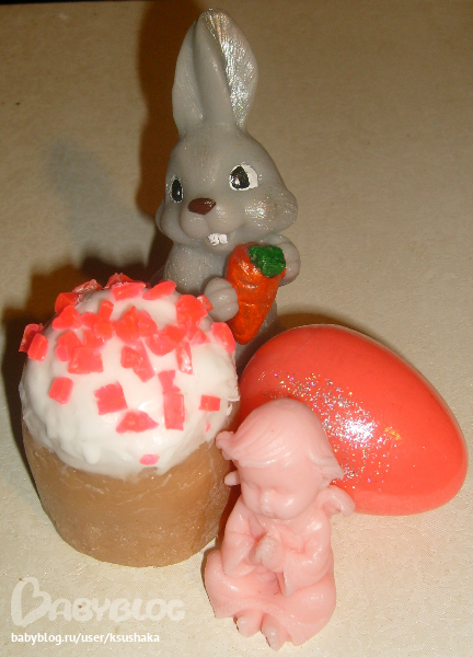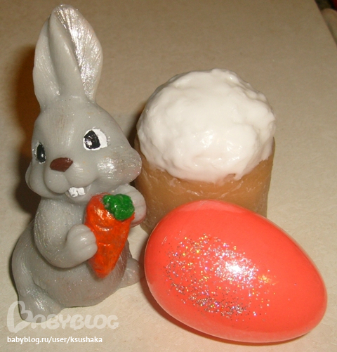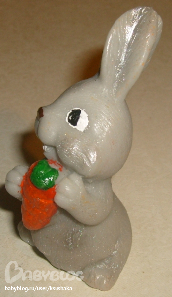 вот такой пасхальный зайчик))) первая заливка - чтобы посмотреть получилась ли вообще форма, поэтому то что нужно просто раскрасила акриловыми красками))) утром был утащен детьми)))