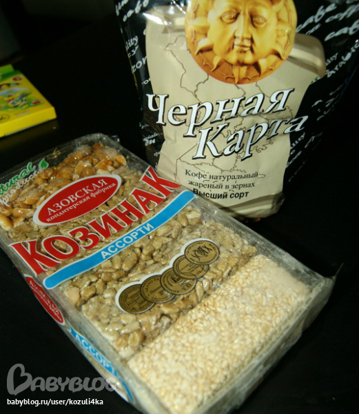кофе в зенрах и обожаемые нашей семьей козинаки... дети стрескали с папой с удовольствием.