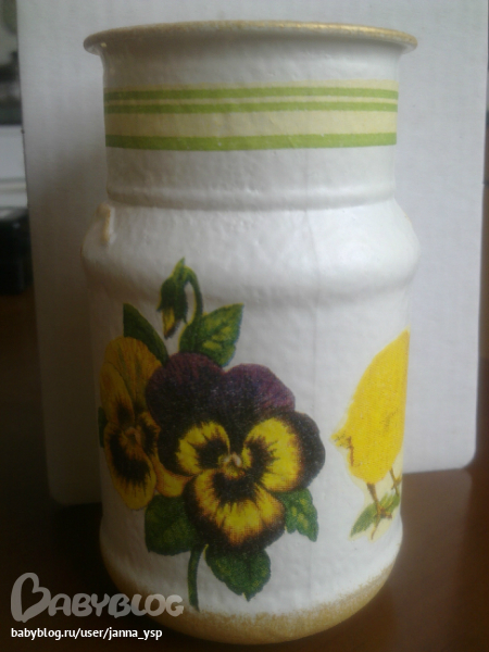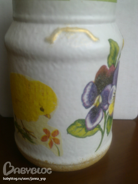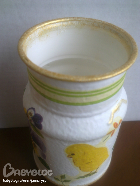 пока еще лак не наносила, мне не хватает в ней чаго-то)) думаю прочпокать ее губкой с розовой краской или зеленой..вот не знаю(