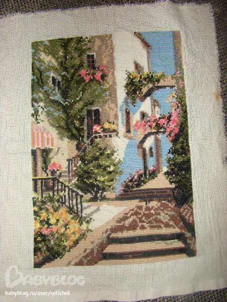 этот дворик был набором, с шерстяными нитками. вышивала в 2003г, по-моему: