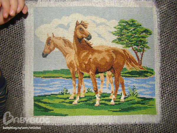 коней вышивала тоже в 2000г, тоже сама подбирала нитки (неудачно подобраны по-моему, но тогда казалось, что сотворила шедевр!!!))) ):
