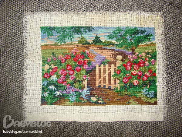 эта первая большая работа "Калитка". покупала отдельно цветную схему и подбирала нитки сама)) края почему-то до ума не доведены))))) тоже где-то 1999-2000год:
