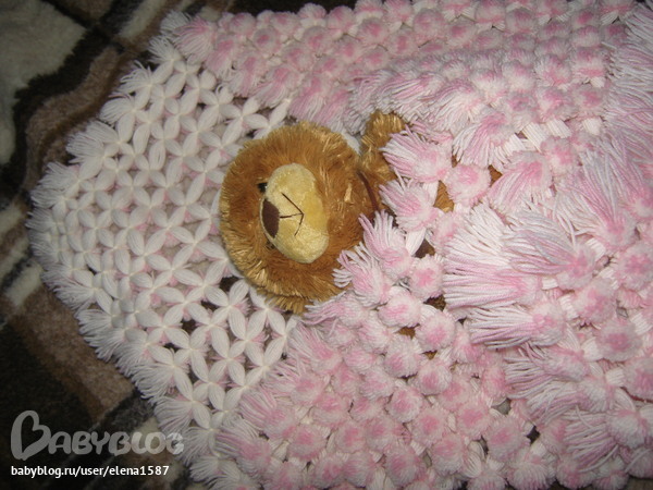 Это рамка тенерифе правильно?? А мохрушки - это что помпончики такие?? это ж сколько работы!! Плед просто чудесный!! Умничка!!