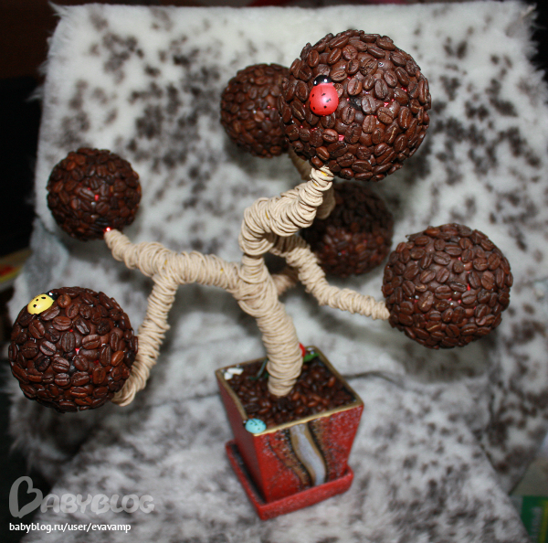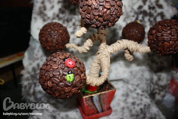 Вот наконец-то смогла сфотографировать свое первое деревце!!! Дерево большое, сантиметров 60 в высоту, каркас из проволки, можно менять форму.