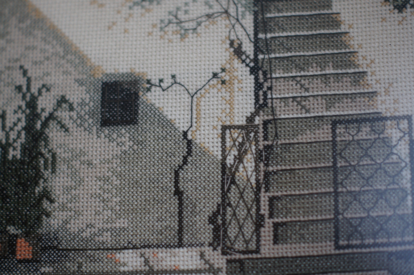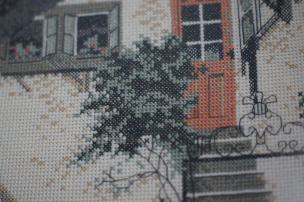 В наборе фон был незашит, я подобрала нитку и все таки зашила, по-моему, не зря.