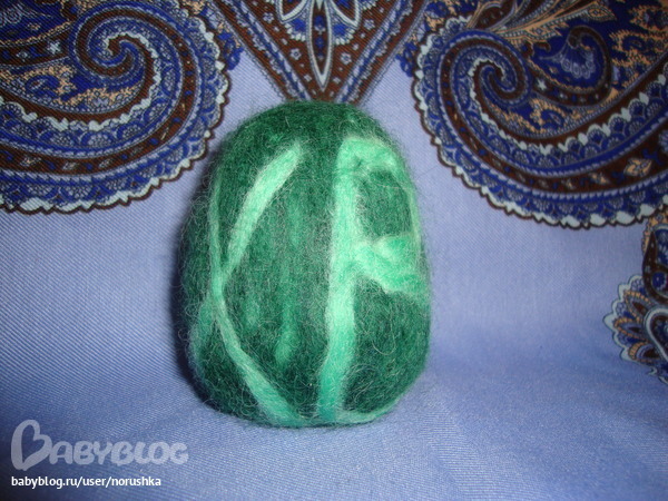 Фелтинг (валяние шерсти)На конкурс Пасхальных поделок в садик. Костя помогал валять, немного иголочкой давала ему потыкать и помочить-помылить. Так что все по-честному, совместная поделка)))