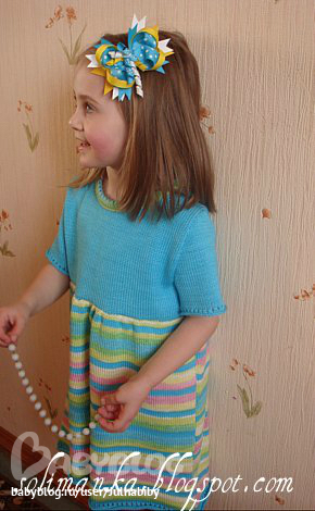 Вязала на машинке первый раз. Быстро, аккуратно..Жалко только с узорами особо не поиграешь. Пряжи ушло мотков 6 по 100гр. Многовато. Рассчитывала на меньшее. Докупала несколько раз. Выкройку брала из Бурды платье на 4 года. В итоге платье получилось лет на 10 точно! Распускать уже было жалко, отложила на будущее. Сделала еще выкройку из какой-то советской книжки. Получилось тоже большевато...Но не так сильно как первое..Что то не везет мне с выкройками..