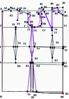 Ширину проверили у проймы? А у вас вообще какой размер по груди? У горловины полочки прямой угол сделайте, боковые сглатьте, пройму на полочке и когда вырезать будете - закройте плечевую вытачку на спинке и иголкой заколите - у вас она оформится по другому. Еще побавиваюсь за нагрудную вытачку, если ее оставить так - торчать будет - советую ее конец поднять на 2-4 см! И там где Н5 прямой угол сделайте, да вроде и все, вы ведь вряди ли будете вытачки на 3 см поднимать...