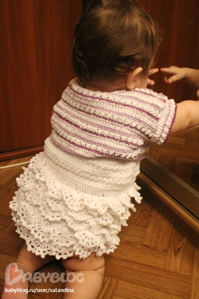 Это платьишко я уже представляла вашему вниманию, а вот болеро связалось позже. Комплект из чистого хлопка, очень приятный к телу))) С удовольствием свяжу и для ваших принцесс что-то красивое на лето, одно НО!!! Повторять не буду, иначе ручной эксклюзив теряет свою уникальность)))