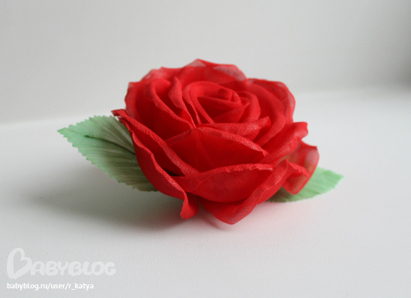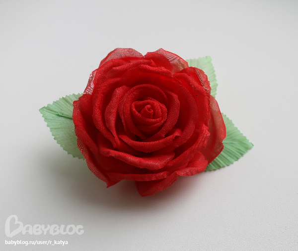 Как я поняла , на первом фото настоящая роза, а на последующих фото уже роза из ткани, правильно?