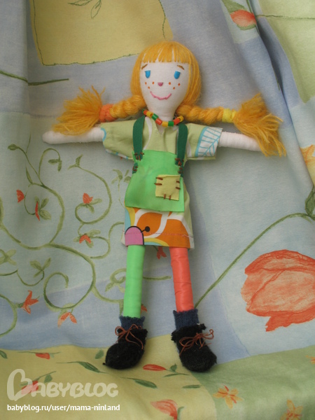 это первая куклена)) счас бы я конечно по-другому сшила Пеппи)) но дочку и вправду эта устраивает) у детей свои мерки критики)