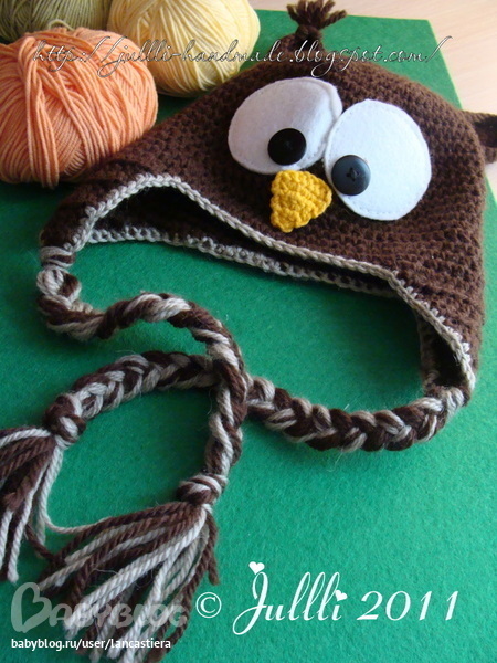 очень просто! вяжется самая простая шапка,с верху вниз,затем надвязываются ушки в нужных вам местах,а крашения-завязки-простая косичка из ниток,2 коуга и 2 пуговицы-глаза,треугольники-нос и 2 ушка-все))