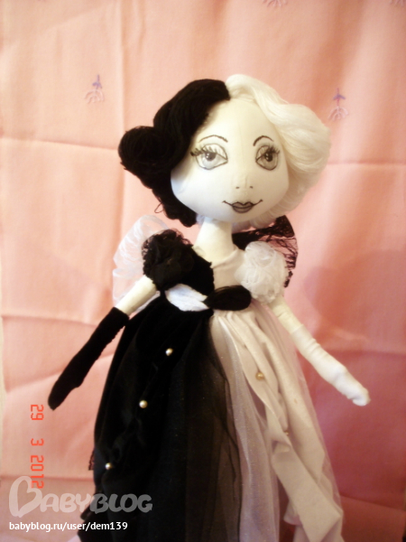 Очень необычная куколка, инь и ян, черное и белое! Утонченная дамочка! Перчатки понравились!