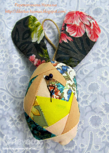 Игрушечный мир - животныеВчера сшила эту небольшую подвеску в виде лоскутного яйцеобразного зайца. Лоскутки собраны с технике , традиционной для моих . Пасхальная тематика выбрана не случайно. Она будет выставлена в качестве приза в благотворительной лотерее на Easter party, которая пройдет в отеле Hyatt Regency Kolkata 1 апреля. Будет там от меня еще пара призов, которые покажу чуть позже. Средства, собранные в лотерее пойдут в помощь детишкам. Интернациональный Женский Клуб в Калькутте, организующий празднование католической Пасхи, традиционно помогает нуждающимся детям.