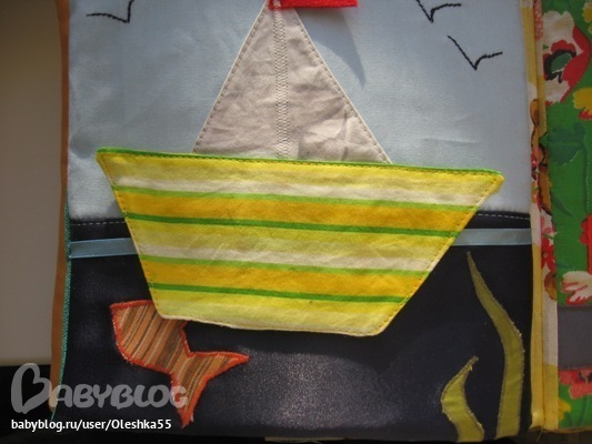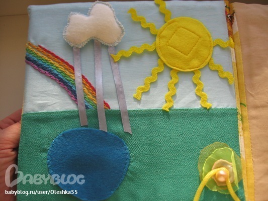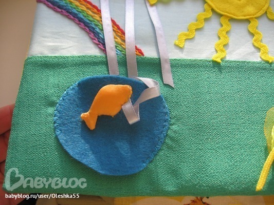 Это день. Внутри страниц вставлен паралон - 1см толщина. Солнце отстегивается, в пруду живет рыбка.