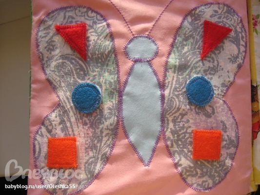У бабочки геометрические фигуры на липучке, можно перемещать.