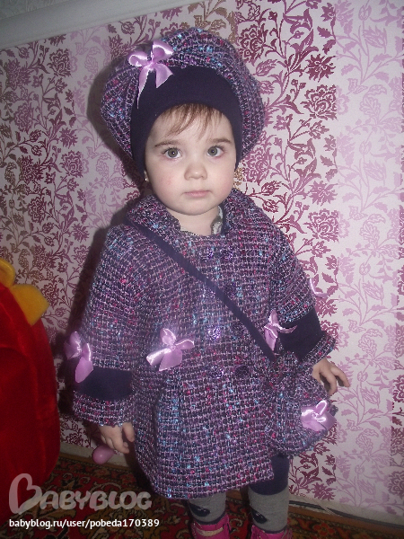 Пальтишко миленькое.Только уберите с него эти бантики,они совсем не идут к нему.А беретик большеват,может можно его немного уменьшить.А так задумка КЛАССНАЯ!