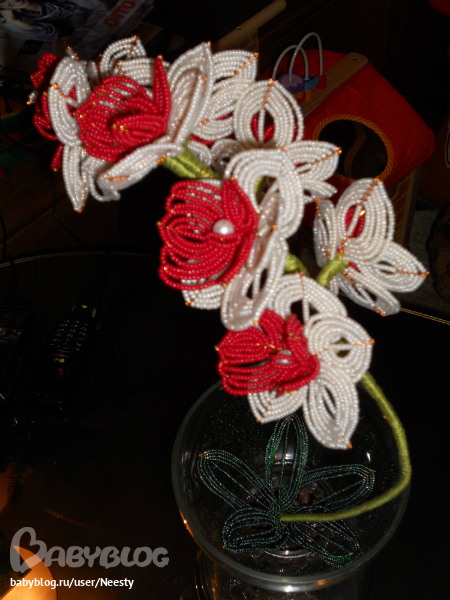 Бисер. Бисероплетение. Украшения из бисера.Девочки,всем привет!!!Я у вас новенькая!!!хочу подружиться со всеми!!!!Добавлю и я свои работы.Делала я их не так давно)Это моя орхидейка!