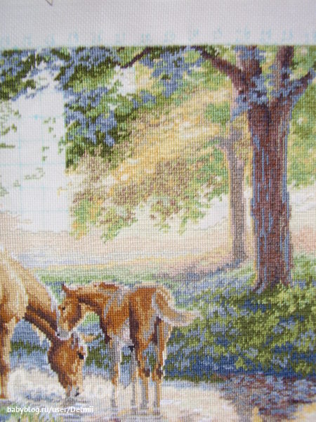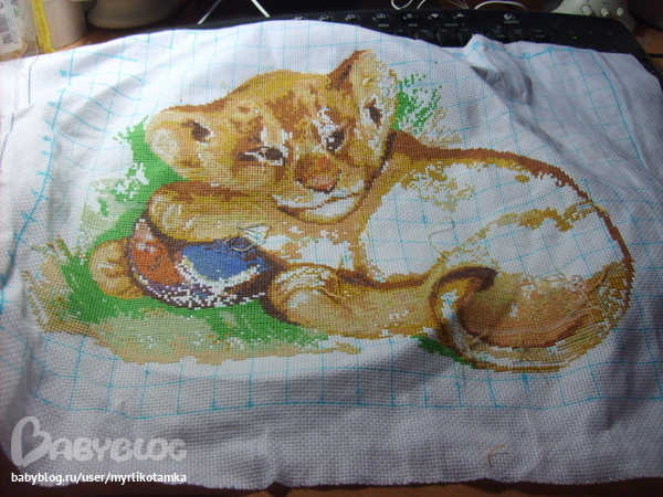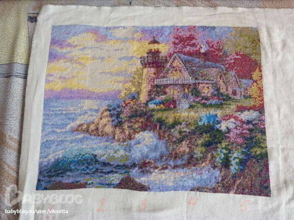 Ребенок продолжает мамкать))) в общем выматывает меня так за день, что вечером я засыпаю практически всегда с ним..а раньше ночами вышивала. В общем очень преочень расстроилась, что не закончила. Крайний срок эта неделя, тк нужно еще в багетку отнести, а 29 числа уже подарить. Не ругайте меня сильно, желание вышивать есть, но вот сил уже нет. Раньше муж хоть вечерами с ребенком сидел, а я иногда вышивала, но на прошлой неделе и мужа видела редко работа, работа...